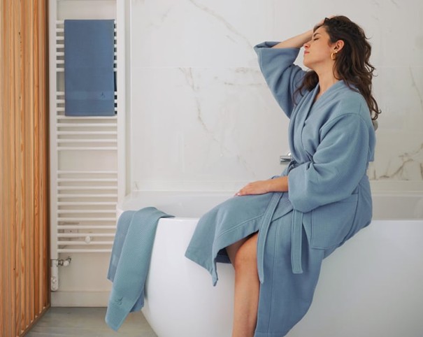 Ce drap de bain en coton bio nid d’abeille enveloppe le corps dans une douceur respirante, avec un tombé élégant et une absorption optimale.