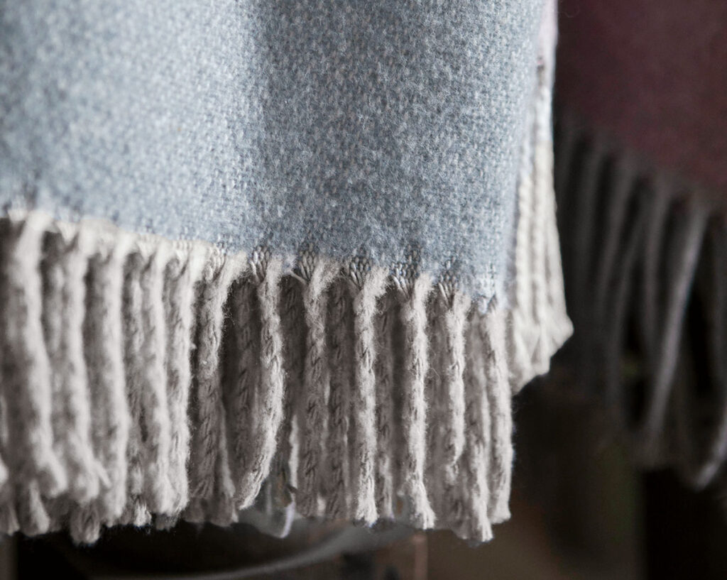 Confectionné par Anne de Solène, le plaid Divin marie 80% coton et 20% soie pour une douceur exquise et un toucher raffiné. Sa teinte parme chinée de gris clair évoque l’élégance discrète et l’harmonie visuelle. Ses franges modernes et ses dimensions généreuses (130 × 180 cm) en font un accessoire haut de gamme pour canapé ou lit.