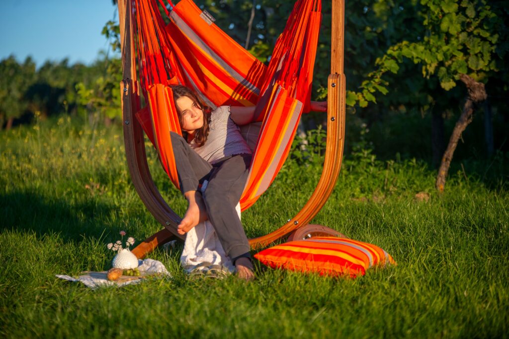 - Fabrication responsable : balancelle tissée en Colombie, support fabriqué en Chine